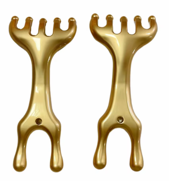 หวีกดจุดแบบพกพาโลโก้สั่งทำได้ ผลิตจากโลหะผสมสังกะสีสีทอง สำหรับนวดศีรษะและคอด้วยมือ