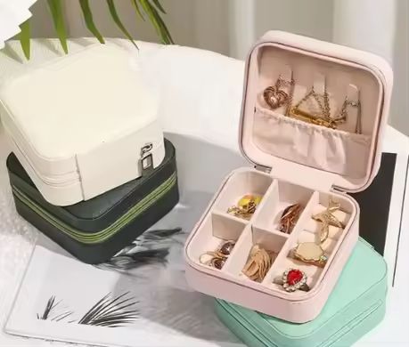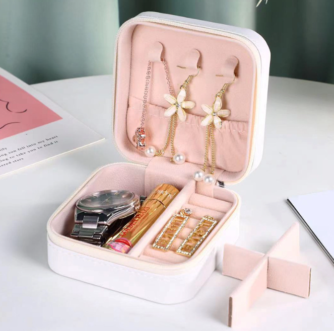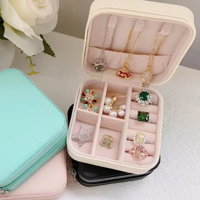 กล่องเก็บเครื่องประดับพกพาแบบมีโลโก้สั่งทำ กล่องใส่เครื่องประดับสำหรับเดินทางทรงสี่เหลี่ยมทำจากหนัง PU สำหรับต่างหู แหวน สร้อยคอ กำไลข้อมือ