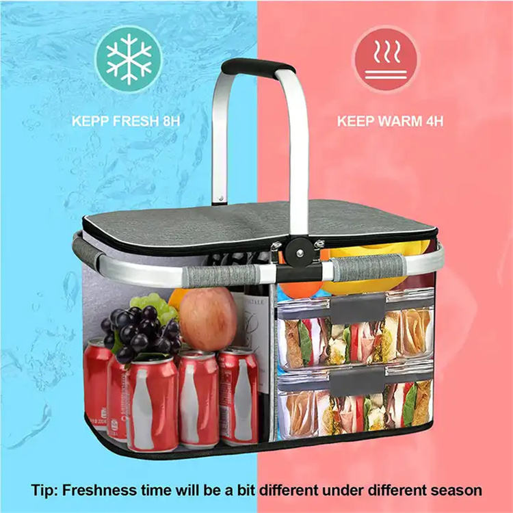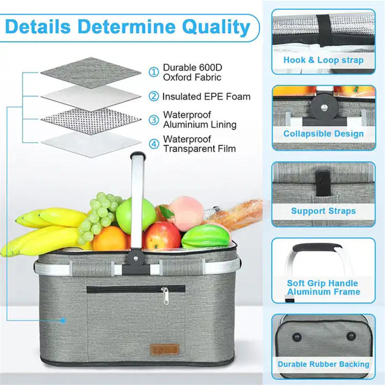 กระเป๋าเก็บความเย็นแบบพกพาสำหรับเดินทาง แคมป์ปิ้ง ใส่ของชำ กันน้ำ พับได้ เก็บอุณหภูมิ พร้อมโลโก้สั่งทำ กระเป๋าใส่อาหารกลางวัน กระเป๋าปิคนิคแฟชั่น