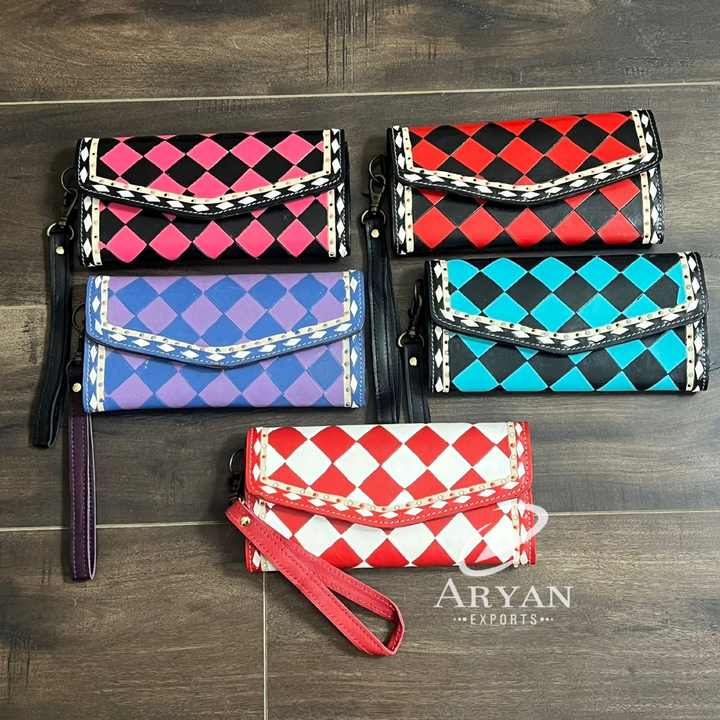 ชื่อสินค้า:กระเป๋าสตางค์คล้องมือหนังลายตารางหมากรุกทำมือ