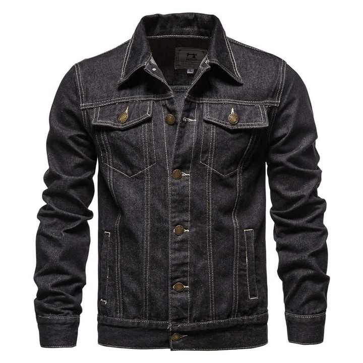 เสื้อโค้ทยีนส์สำหรับผู้ชายพิมพ์ลายโลโก้แบบลำลอง