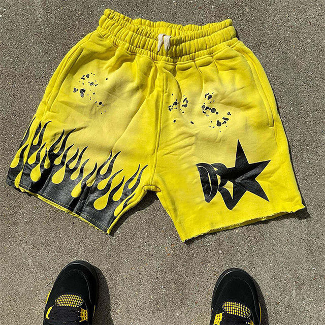 กางเกงผ้าฝ้ายผู้ชายพิมพ์ลายโลโก้ออกแบบได้ตามต้องการกางเกงขาสั้นสำหรับล้างกรดสไตล์วินเทจขนาดใหญ่ทำจากนันจูนานาชาติ