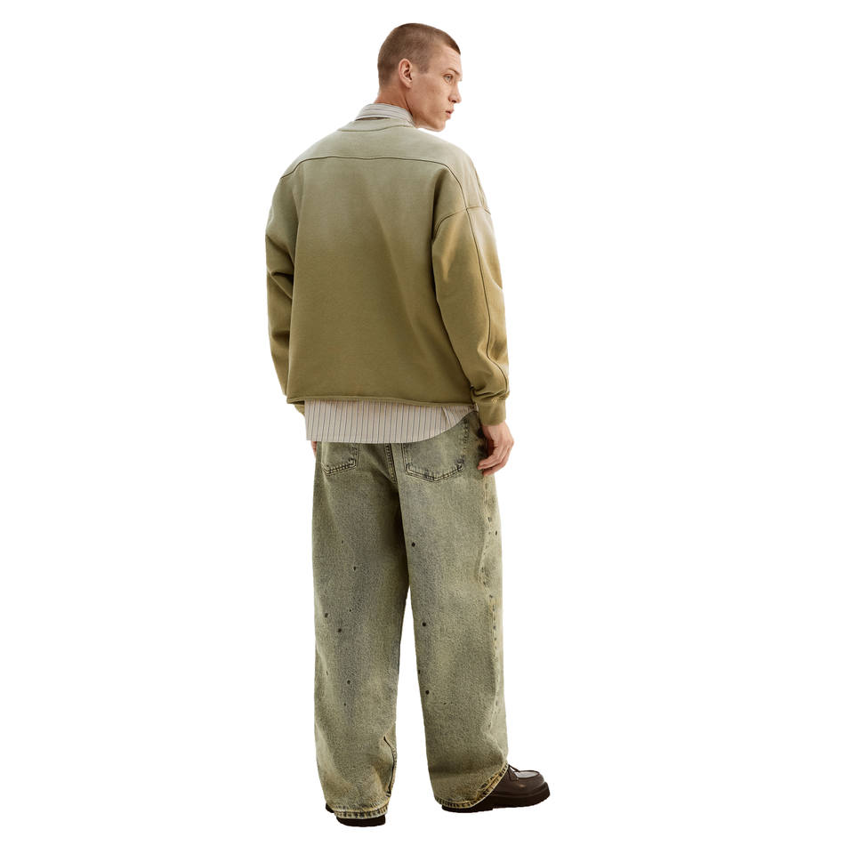 เสื้อสเวตเชิ้ตคอกลมเนื้อหนาพิมพ์โลโก้ตามสั่งสำหรับผู้ชาย เสื้อสเวตเชิ้ตแบบฟอกสีพร้อมโลโก้แบบกำหนดเอง