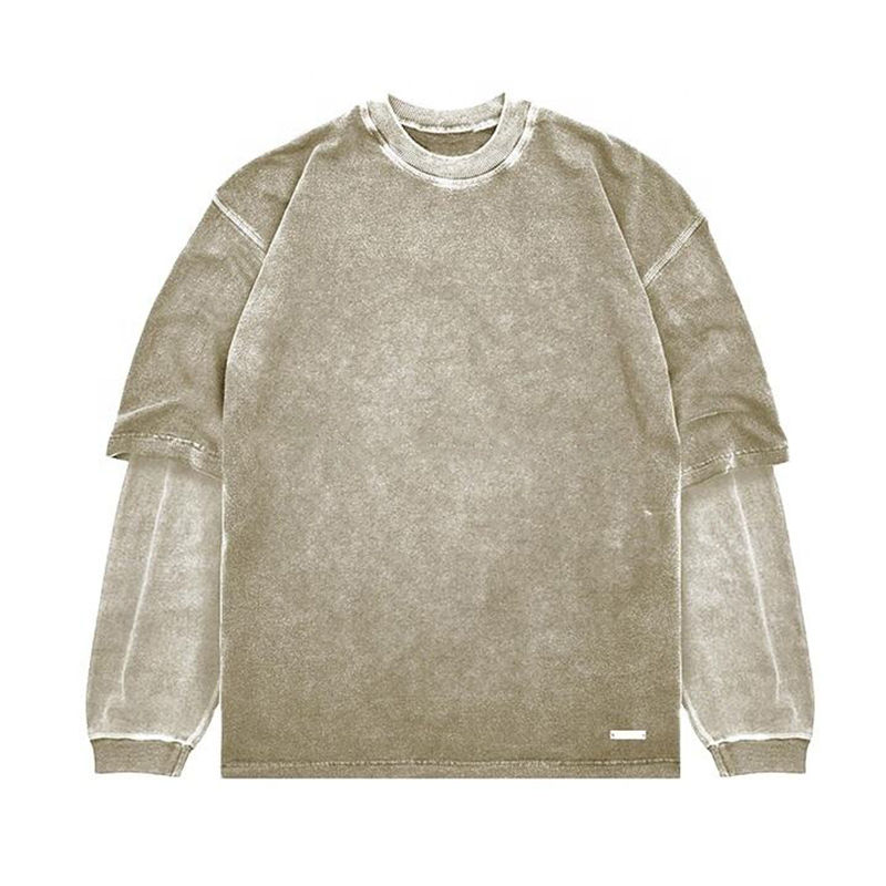 เสื้อยืดแขนยาวสองชั้นสำหรับผู้ชายเสื้อยืดโอเวอร์ไซส์แขนยาวพิมพ์ลายโลโก้ตามสั่ง