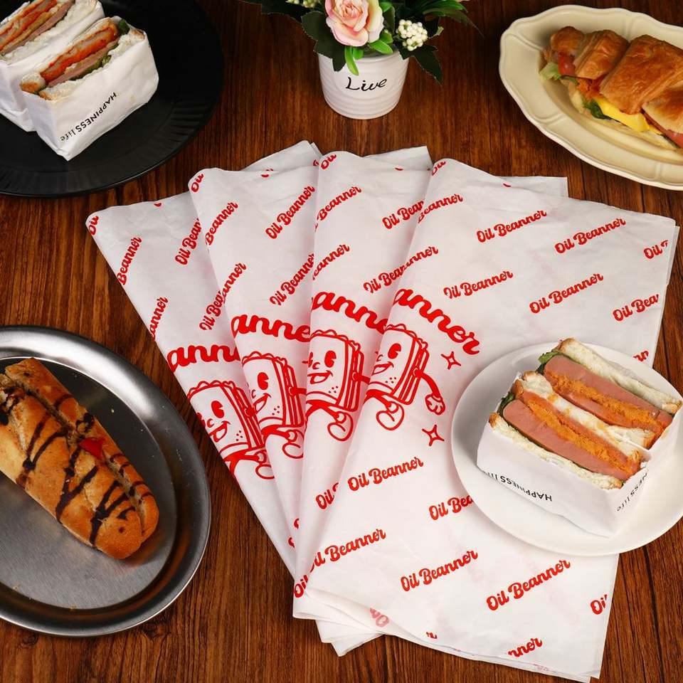 แผ่นรองกันไขมันเกรดอาหาร28*38ซม. พิมพ์โลโก้ได้ตามต้องการกระดาษห่อบรรจุภัณฑ์เบเกอรี่