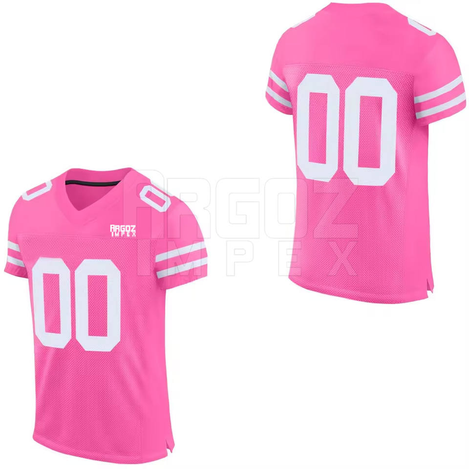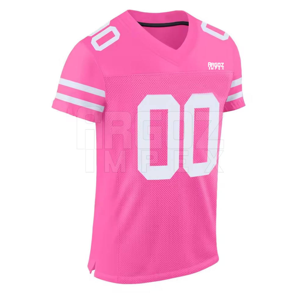 เสื้อฟุตบอลอเมริกันพิมพ์โลโก้ตามสั่ง ผ้าโพลีเอสเตอร์ 100% ระบายอากาศ แห้งเร็ว แขนสั้น ไซส์ใหญ่ เสื้อฝึกซ้อมแบบกำหนดเอง