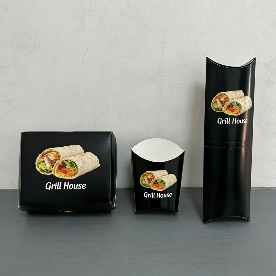 Custom Logo Printed Arabic Halal Restaurant Grill Wrap Takeout Tarna Shawarma Compartment Box Kebab Pillow Box Paper Packaging