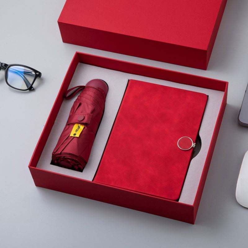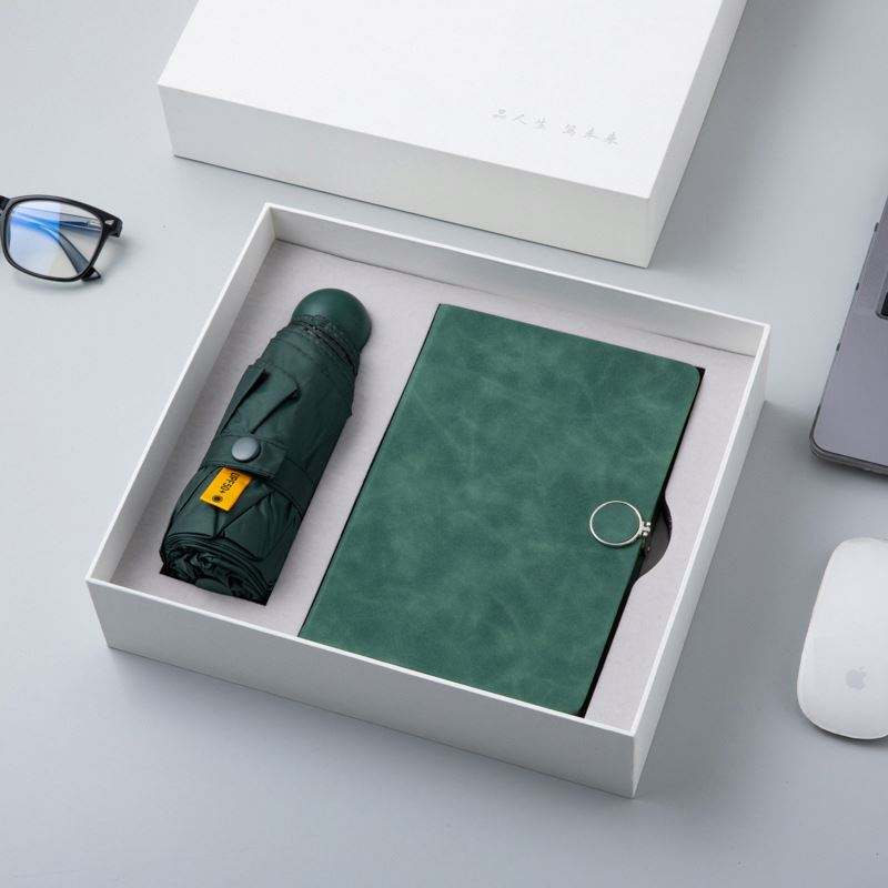 ชุดของขวัญธุรกิจพิมพ์โลโก้ที่กำหนดเองสมุดโน๊ตหนัง A5วารสารร่มชุดของขวัญองค์กรไดอารี่พร้อมปากกาหรูหรา