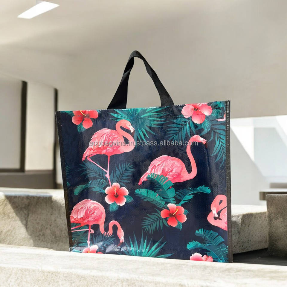 ถุงผ้าช็อปปิ้งกันน้ำใช้ซ้ำได้พิมพ์โลโก้ที่กำหนดเองทนทานเป็นมิตรกับสิ่งแวดล้อม