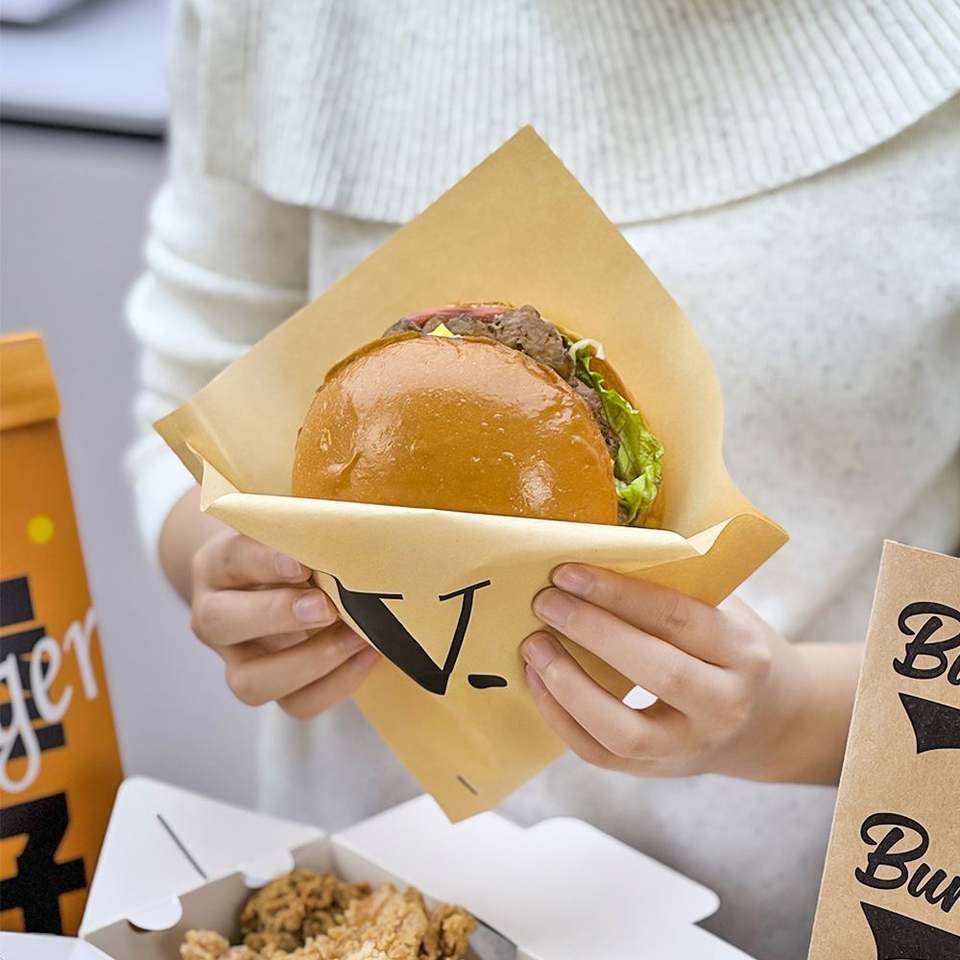ถุงกระดาษคราฟท์กันน้ำ ย่อยสลายได้ รีไซเคิลได้ เป็นมิตรกับสิ่งแวดล้อม พิมพ์โลโก้ตามสั่ง สำหรับใส่แซนวิช เบอร์เกอร์ บาแกตต์