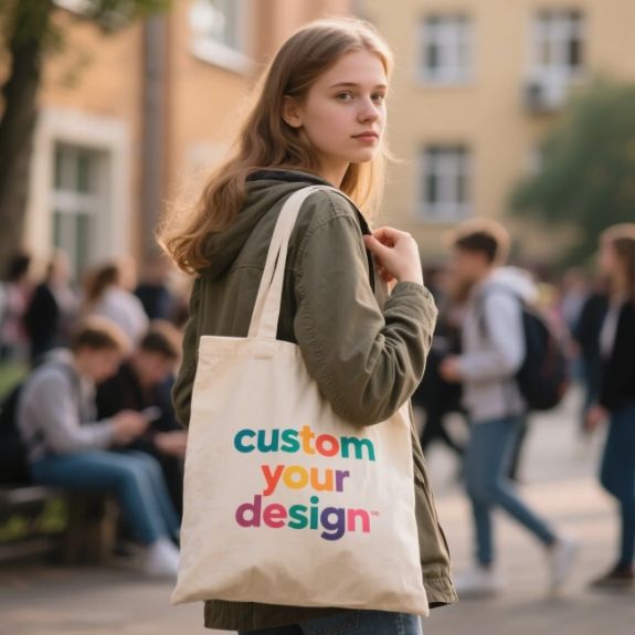 กระเป๋าผ้าแคนวาสผ้าฝ้ายใช้ซ้ำได้เป็นมิตรต่อสิ่งแวดล้อมพิมพ์โลโก้ได้ตามต้องการ