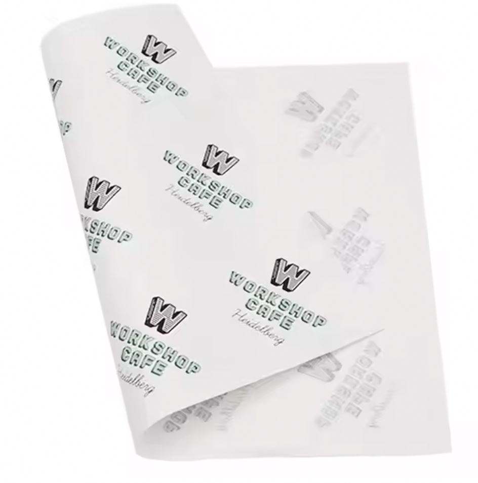 กระดาษห่อเบอร์เกอร์พิมพ์โลโก้ตามสั่ง เกรดอาหาร ป้องกันไขมัน ด้านเดียวเคลือบ PE โรงงานผลิตโดยตรง