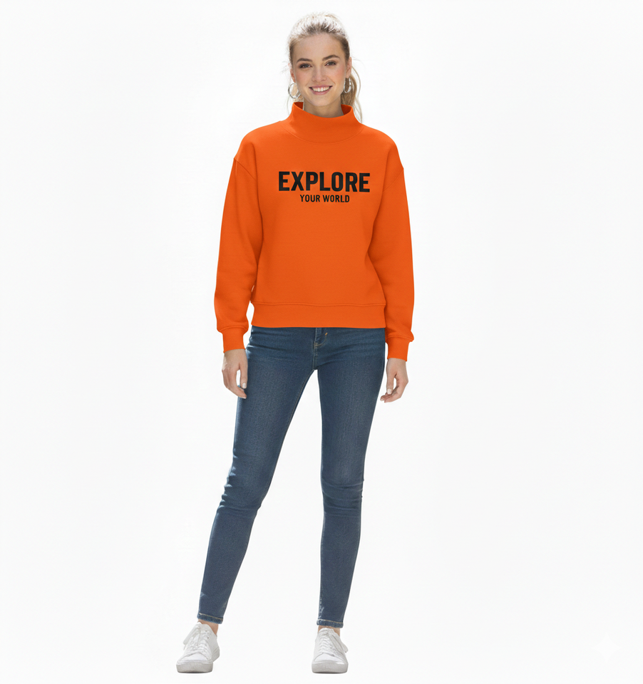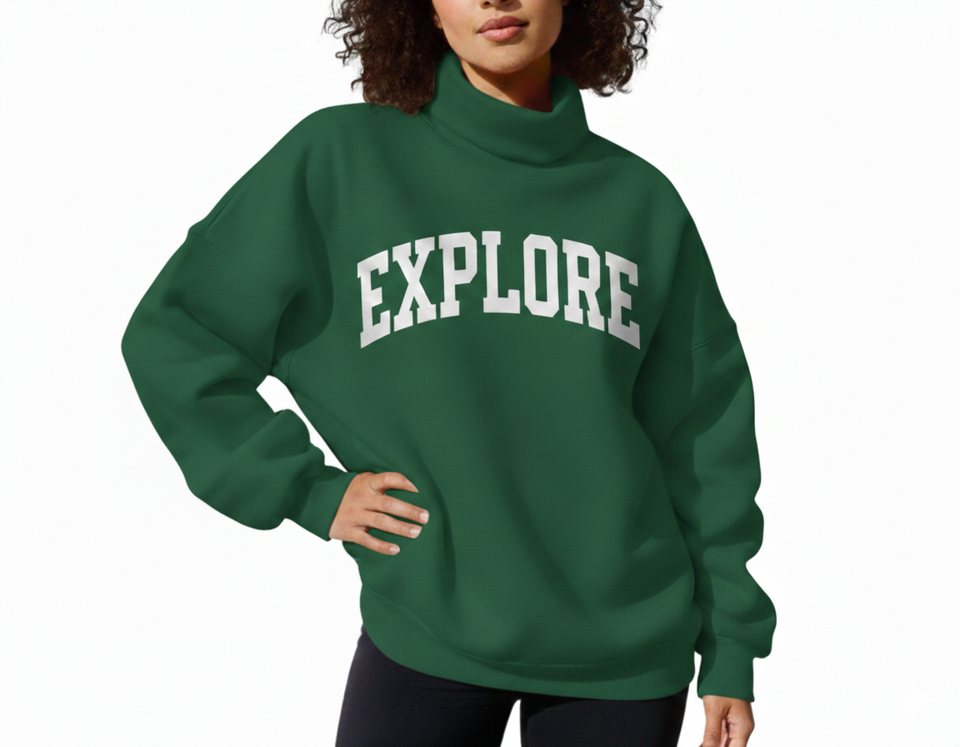 เสื้อสเวตเชิ้ตคอเต่าผู้หญิงทรงโอเวอร์ไซส์ พิมพ์โลโก้ตามสั่ง ผ้าฝ้ายฟลีซ 100% ป้องกันการหดตัว ป้องกันการเป็นขุย ระบายอากาศได้ดี