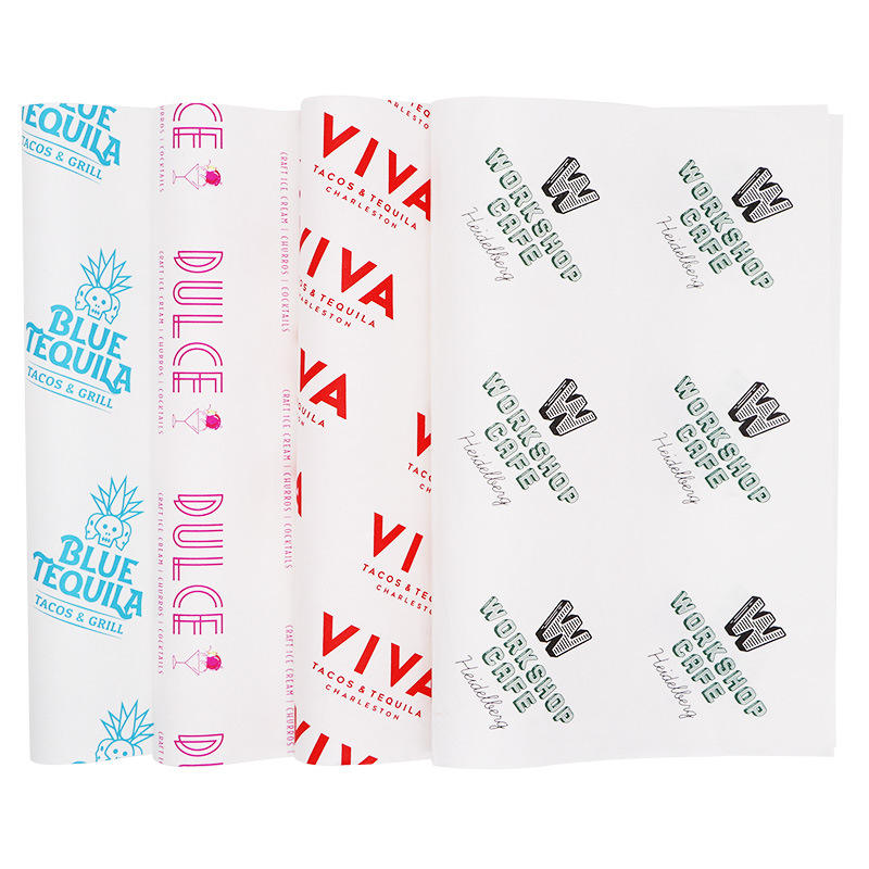 กระดาษอบกันไขมันพิมพ์โลโก้ที่กำหนดเองสำหรับห่อของขวัญบรรจุภัณฑ์เสื้อผ้าอุตสาหกรรมอาหารเทคนิคการพิมพ์แบบยืดหยุ่น