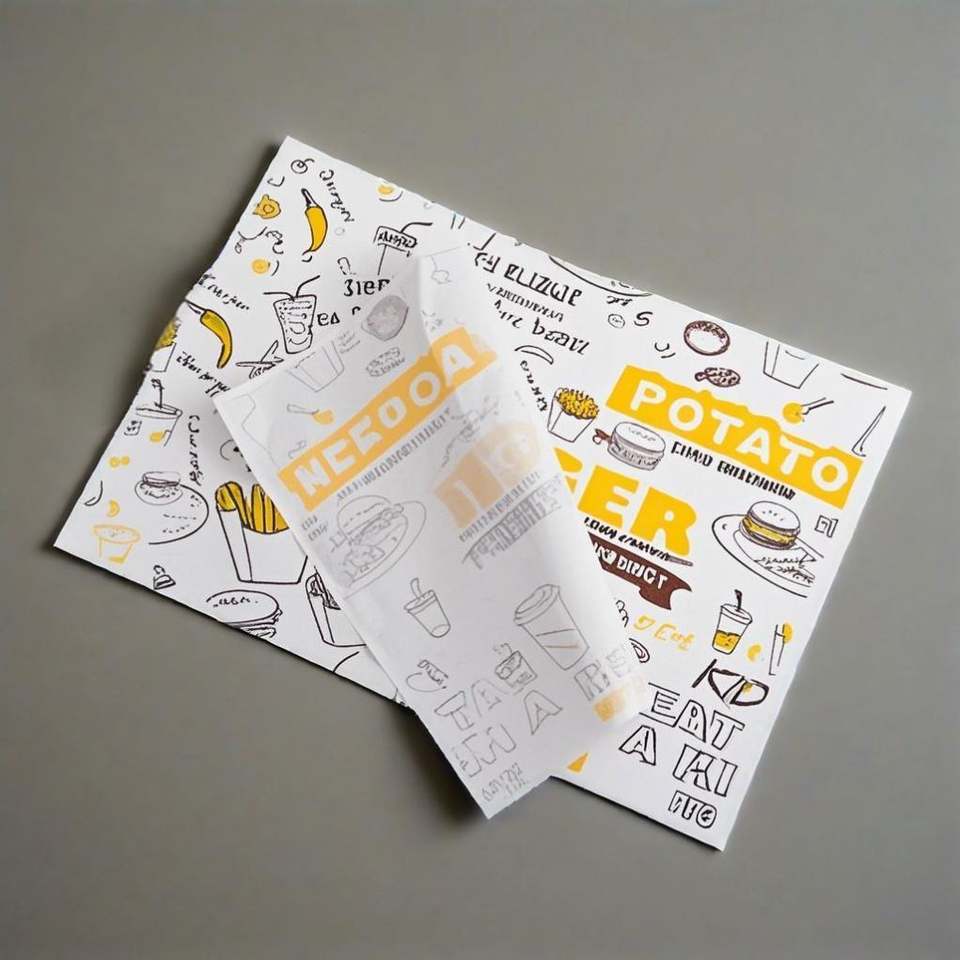 กระดาษห่ออาหารกันน้ำมัน กันไขมัน พิมพ์โลโก้ตามสั่ง กระดาษอบขนมแบบเวอร์จิ้น พิมพ์ออฟเซ็ต