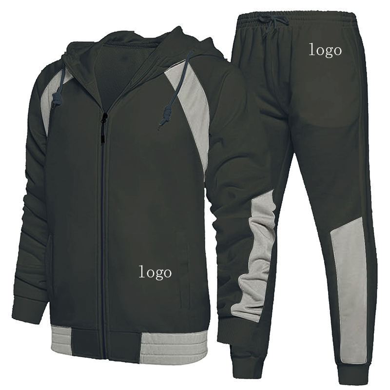 ชุดวอร์มผู้ชายแบบมีฮู้ด พิมพ์โลโก้ตามสั่ง กันลม ระบายอากาศได้ดี ผ้าฟลีซคอตตอน 100% ชุดออกกำลังกายสองชิ้น กางเกงจ็อกเกอร์