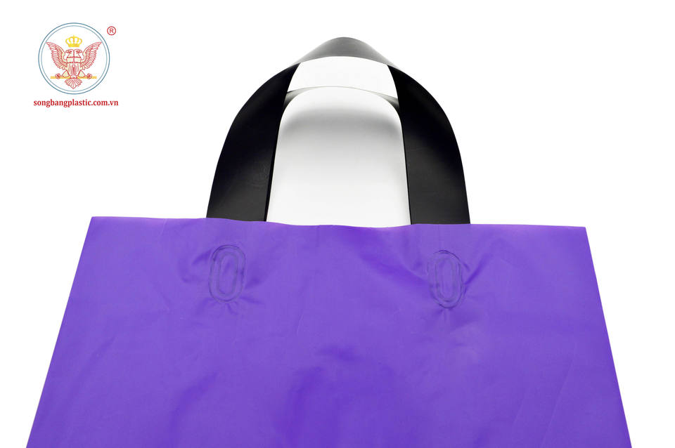 ถุงพลาสติกด้านล่างแบนพร้อมที่จับแบบห่วงนุ่มสำหรับใช้ช้อปปิ้งซูเปอร์มาร์เก็ตพิมพ์โลโก้ตามสั่ง ldpe/lldpe