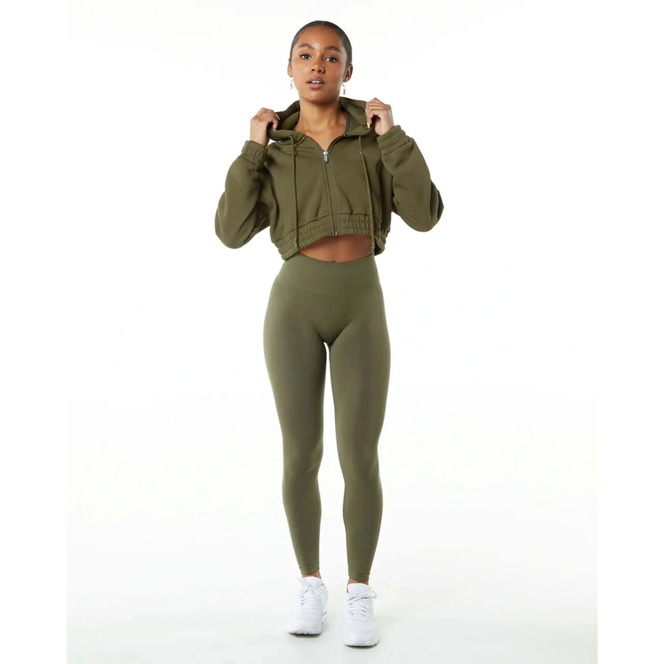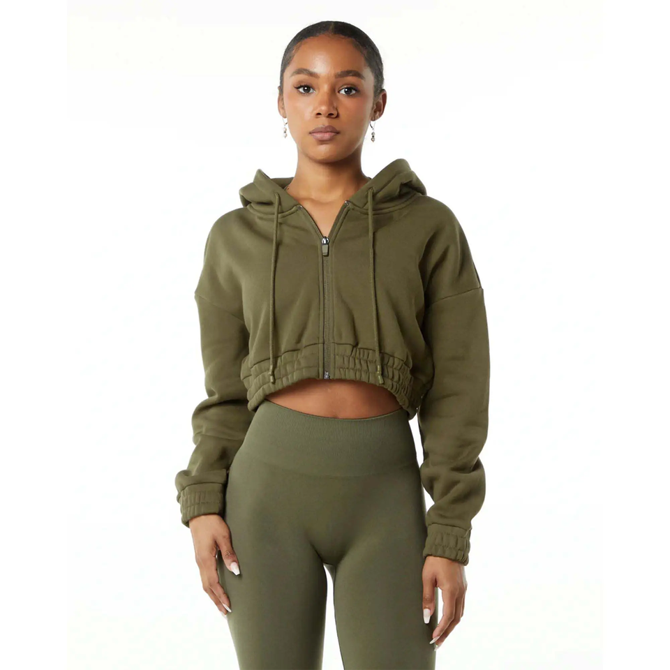 เสื้อครอปมีฮู้ดแขนยาวผ้าฟลีซสำหรับผู้หญิงเสื้อกันหนาวผ้าฝ้ายพิมพ์โลโก้ด้านหน้าสำหรับฤดูหนาว
