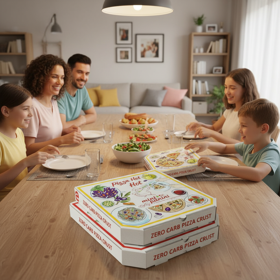 กล่องพิซซ่าพิมพ์โลโก้ตามสั่ง กล่องบรรจุภัณฑ์พิซซ่าลูกฟูกแบบกำหนดเอง สำหรับการส่งอาหารและใช้ในร้านอาหาร