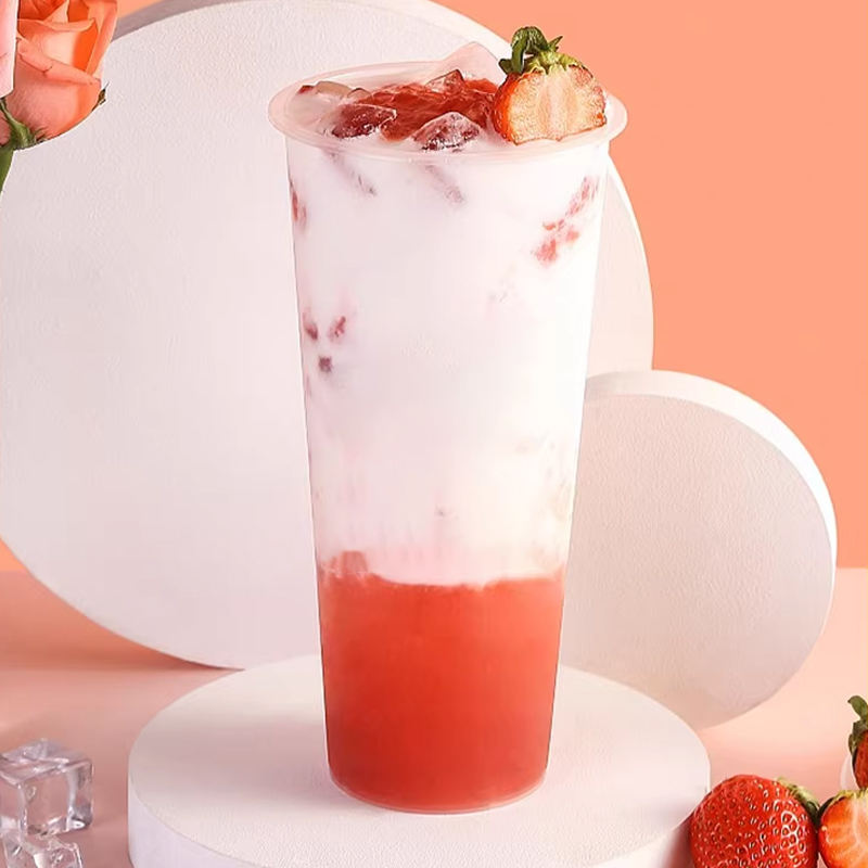 แก้วพลาสติก PP แข็ง ขนาด 500 มล./700 มล. ผนังเดียว สำหรับกาแฟ นม ชานมไข่มุก พร้อมฝาปิด ขนาดเส้นผ่านศูนย์กลาง 90 มม. พิมพ์โลโก้ตามสั่ง