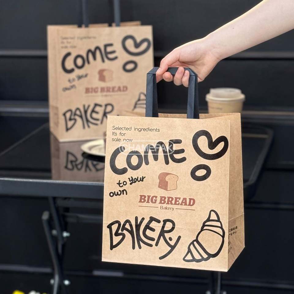 ถุงกระดาษคราฟท์พิมพ์โลโก้ตามสั่ง สำหรับร้านอาหาร ซื้อกลับบ้าน ร้านขายของชำ ซูเปอร์มาร์เก็ต พร้อมหูหิ้ว