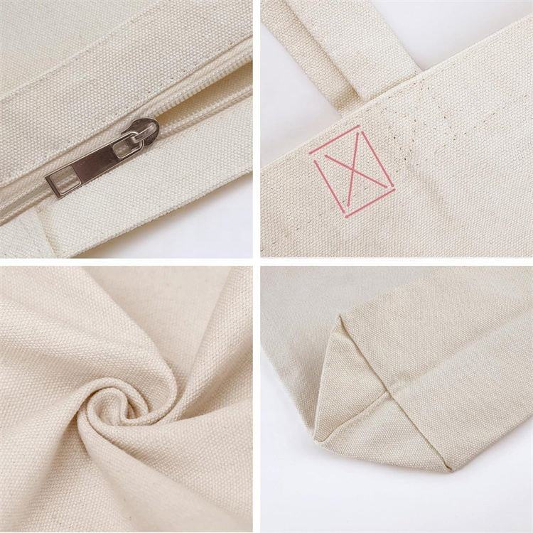 กระเป๋าโท้ทธรรมดาพร้อมผ้าใบผ้าฝ้ายมีซิป