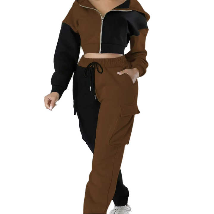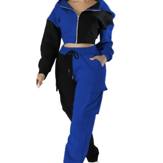ชุดวอร์มผู้หญิงแบบมีฮู้ดพิมพ์โลโก้ตามสั่ง ดีไซน์เรียบง่าย ชุดออกกำลังกาย 2 ชิ้น สไตล์สตรีทแวร์