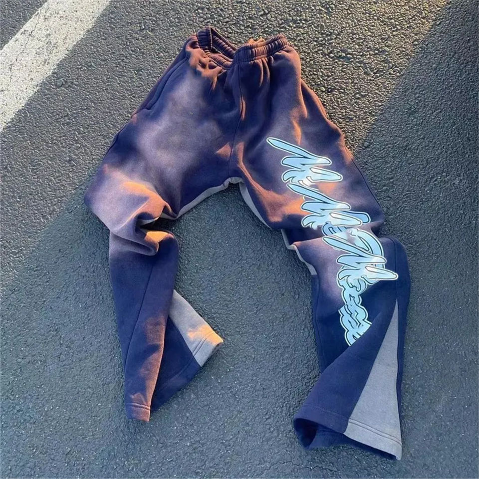กางเกงวอร์มผู้ชายขาบานสำหรับวิ่งจ๊วกิ้งลายตามสั่งพิมพ์โลโก้แนววินเทจ