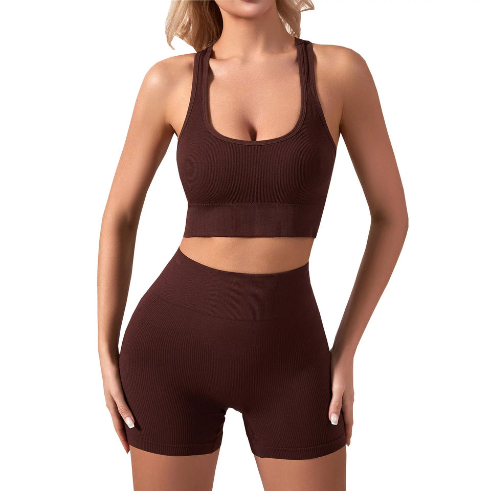 การพิมพ์โลโก้ที่กําหนดเอง 2024 ฤดูร้อนสั้นกีฬาCrop Top Push Up Braโยคะสั้น 2 ชิ้นJoggerออกกําลังกายRomper Onesieผู้หญิงชุด