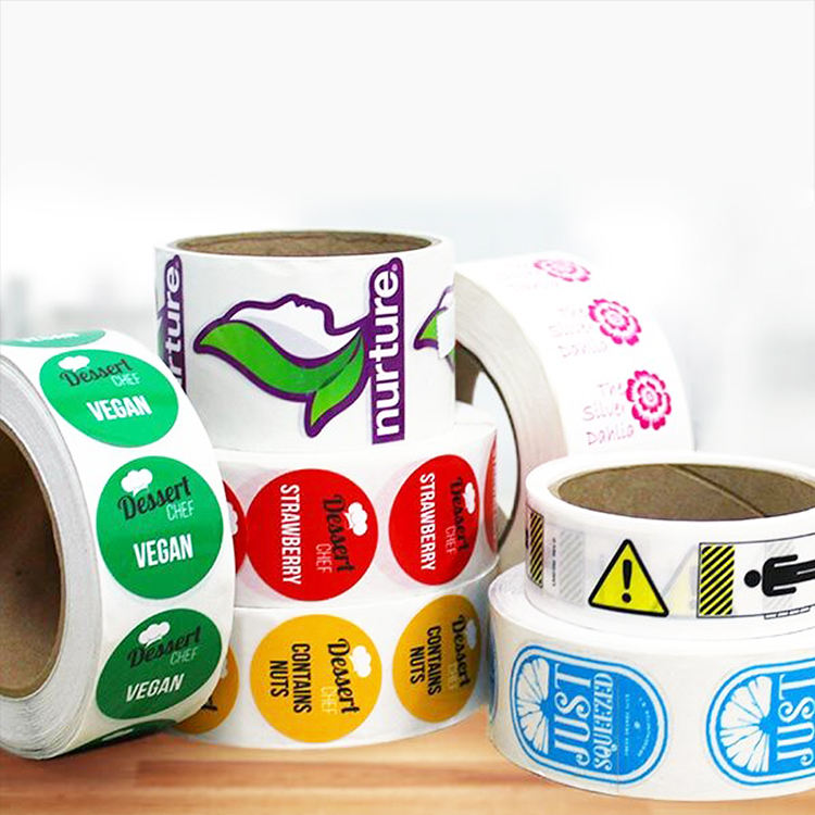 โลโก้ที่กำหนดเองพิมพ์รอบสติกเกอร์ม้วนส่วนบุคคลตกแต่งของขวัญอาหารบรรจุภัณฑ์ปิดผนึกสติกเกอร์
