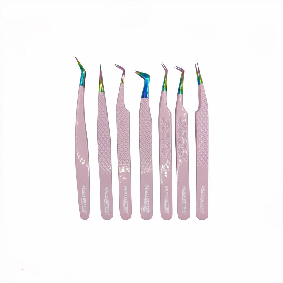 แหนบต่อขนตาแบบปลายสีชมพูอ่อน45 90องศาน้ำหนักเบาออกแบบโลโก้ได้ตามต้องการ