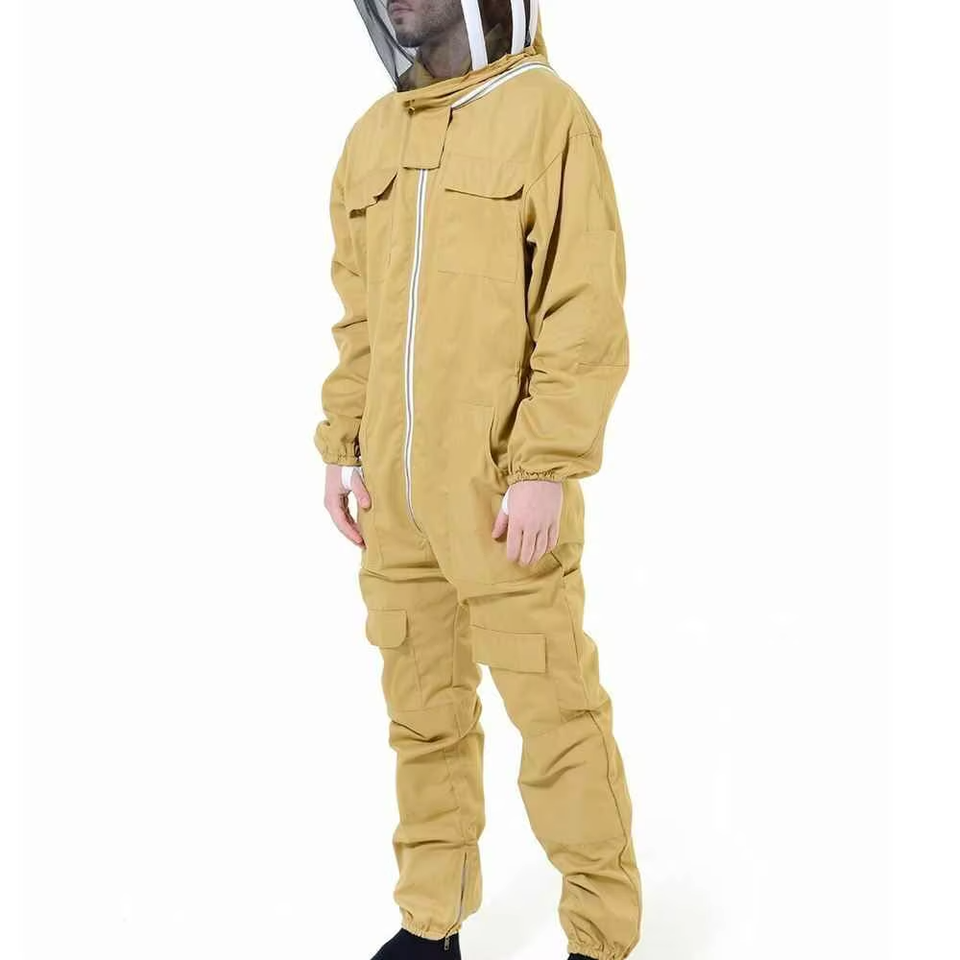 ชุดผ้าฝ้ายสำหรับเลี้ยงผึ้งแบบมืออาชีพพร้อมโลโก้สั่งทำพิเศษ ชุดป้องกันผึ้งแบบเต็มตัว สีแทน ชุดเลี้ยงผึ้งแบบปลอดภัย รับผลิตตามแบบ OEM
