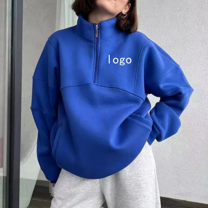 เสื้อกันหนาวแบบสวมหัวมีฮู้ดสำหรับผู้หญิงเสื้อมีซิปครึ่งตัวขนาดใหญ่พิเศษโลโก้ออกแบบได้ตามต้องการ