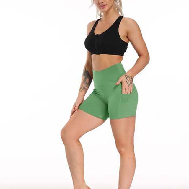 Custom Logo Quick Dry Fitness Yoga Sports With Pockets Elastic Waist Polyester Spandex Gym Fitness Women's Shorts Cheap Price