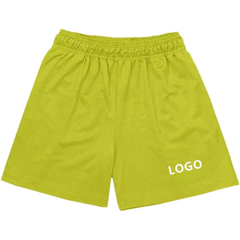กางเกงขาสั้นผ้าตาข่ายแห้งเร็วน้ำหนักเบาเป็นมิตรต่อสิ่งแวดล้อมสำหรับออกกำลังกายในยิมดีไซน์แข็งแรงทนทานออกแบบโลโก้ได้ตามต้องการ