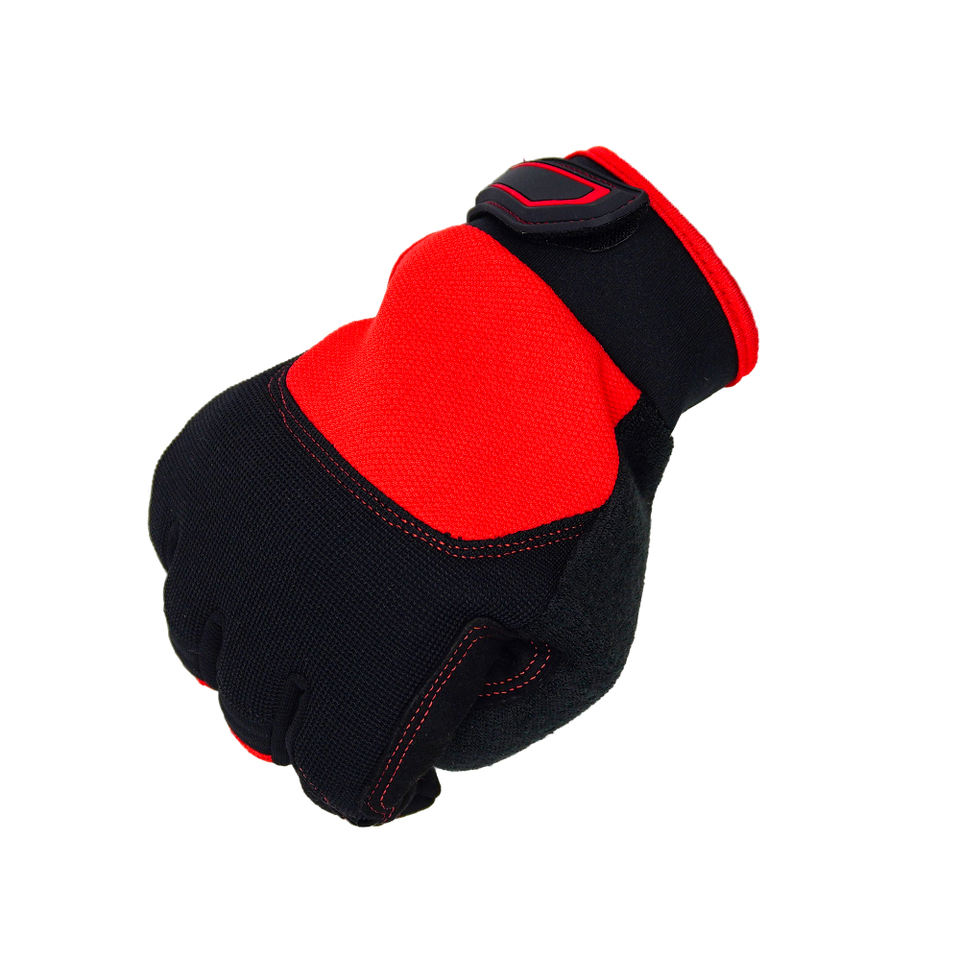 ถุงมือทำงานอุตสาหกรรมสีแดงถุงมือไมโครไฟเบอร์กันลื่นทนทานสำหรับงานช่างโลโก้ออกแบบได้ตามต้องการ