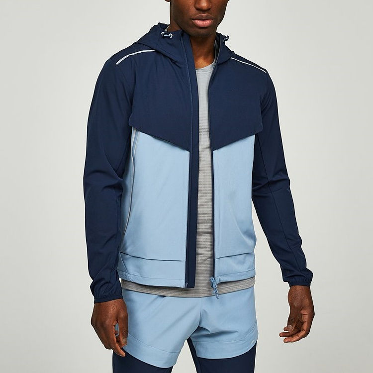 แจ็กเก็ตมีซิปสะท้อนแสงสำหรับผู้ชายแฟชั่น2025โลโก้ออกแบบได้ตามที่ต้องการน้ำหนักเบาบล็อกสีสะท้อนแสง