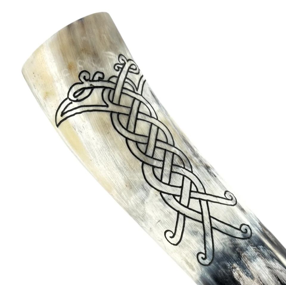 แตรสำหรับดื่มทางศาสนาทำจาก100% เขาควายธรรมชาติขัดเงางานฝีมือแกะสลักสไตล์สัตว์ความจุ300-400มล. ออกแบบโลโก้ได้ตามต้องการ