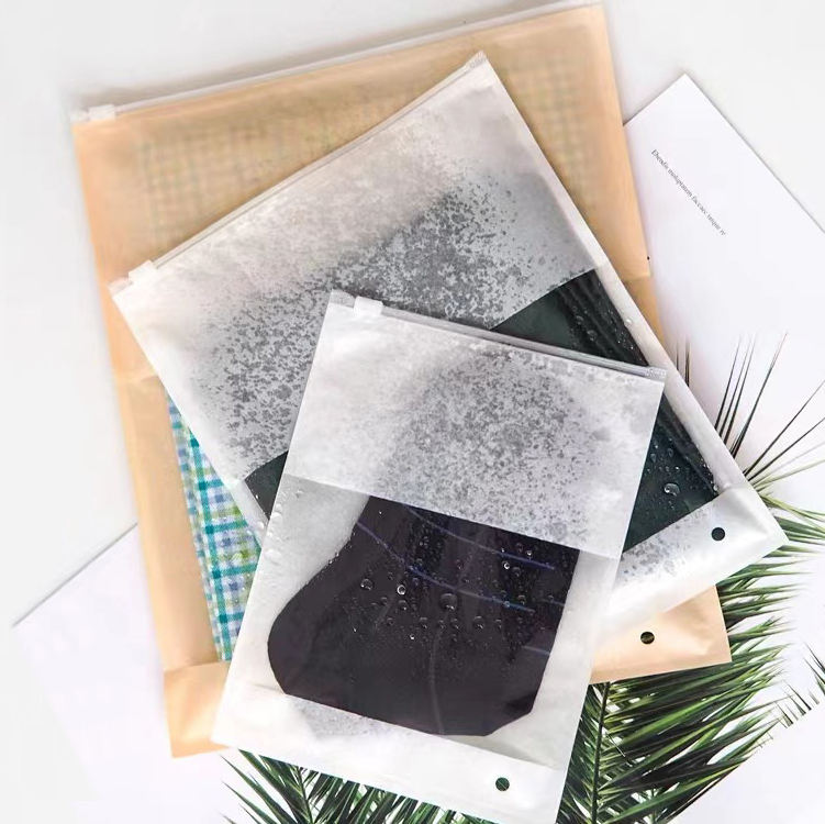 ถุงซิปคราฟท์สีขาวพิมพ์โลโก้ได้ ปิดผนึกได้ สำหรับใส่ถุงเท้า เสื้อยืด กางเกงยีนส์ เสื้อแจ็คเก็ต บรรจุภัณฑ์เสื้อผ้า มีหน้าต่างใส
