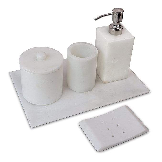 ชุดอุปกรณ์ห้องน้ำเรซิ่นพร้อมโลโก้สั่งทำ 4 ชิ้น ลายทอง สำหรับใช้ในบ้าน ประกอบด้วยที่จ่ายสบู่ ที่วางแปรงสีฟัน ถาดวางของในห้องน้ำ ราคาดีที่สุด