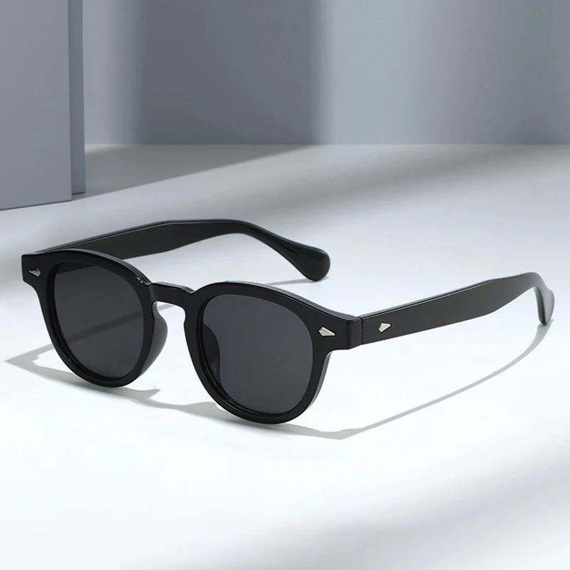 แว่นกันแดดทรงกลมตกแต่งหมุด UV400 สำหรับผู้ชายและผู้หญิง
