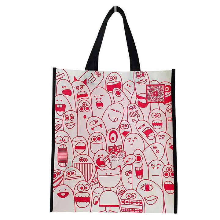 ถุงช้อปปิ้งซุปเปอร์มาร์เก็ตแบบมีโลโก้สั่งทำ ใช้ซ้ำได้ ผลิตจากผ้า PP ทอเคลือบอย่างดี ลายการ์ตูน ราคาถูก รีไซเคิลได้