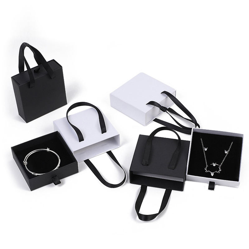 กล่องของขวัญกระดาษแบบลิ้นชักพร้อมที่จับริบบิ้นวิกผมกระดาษแข็งแข็งโลโก้แบบกำหนดเอง