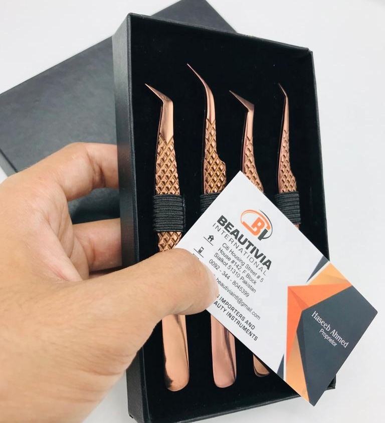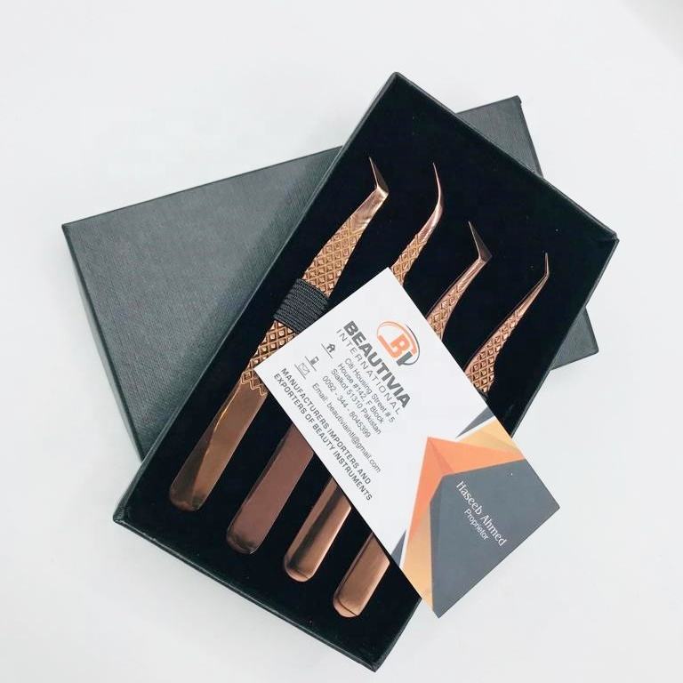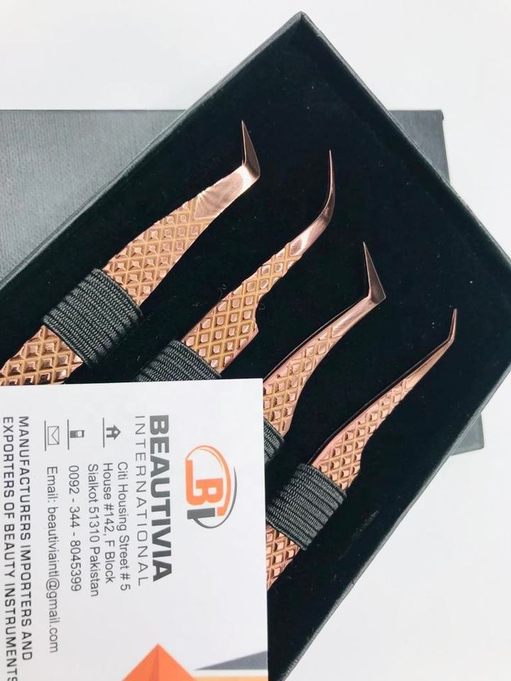 แหนบสำหรับต่อขนตาปลอมพลาสม่าสีโรสโกลด์แบบกำหนดโลโก้ได้ตามต้องการ
