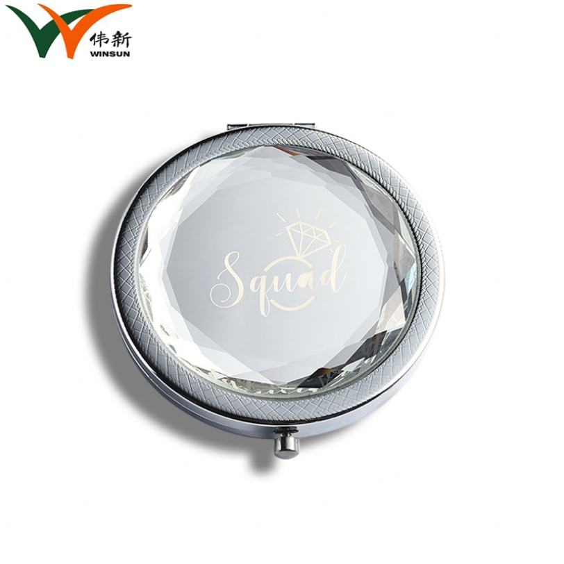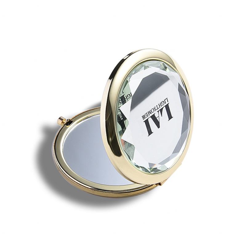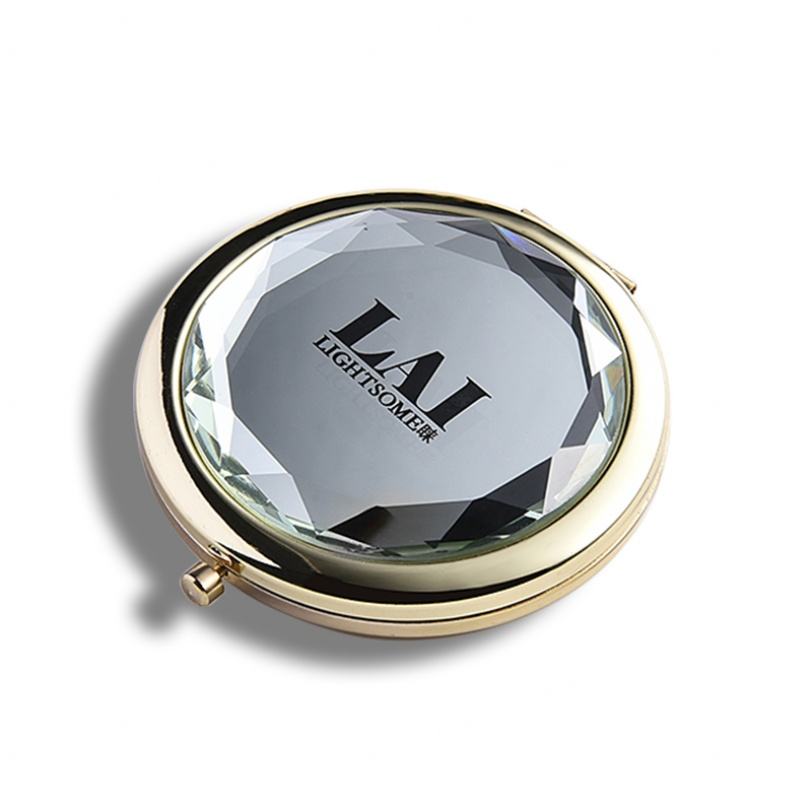 กระจกพกพาแบบกลมสองด้านประดับคริสตัลสวยงามพร้อมโลโก้สั่งทำได้