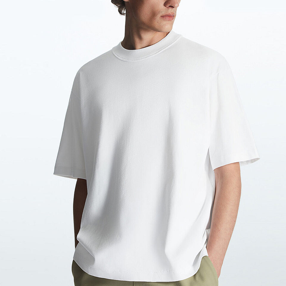 เสื้อยืดคอกลมโอเวอร์ไซส์ สกรีนโลโก้ได้ สไตล์สตรีทแวร์ ทรงหลวม ไหล่ตก ผ้าคอตตอนหนา ทรงบ็อกซี่ เสื้อยืดเปล่าสำหรับผู้ชาย