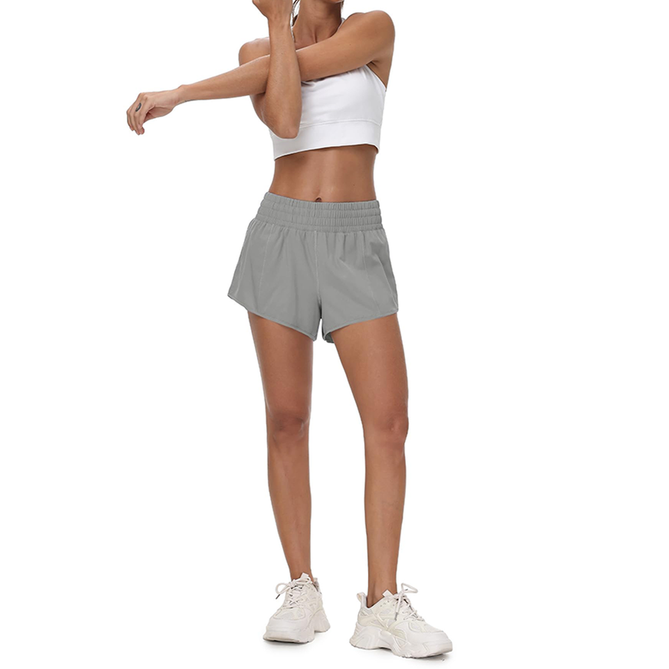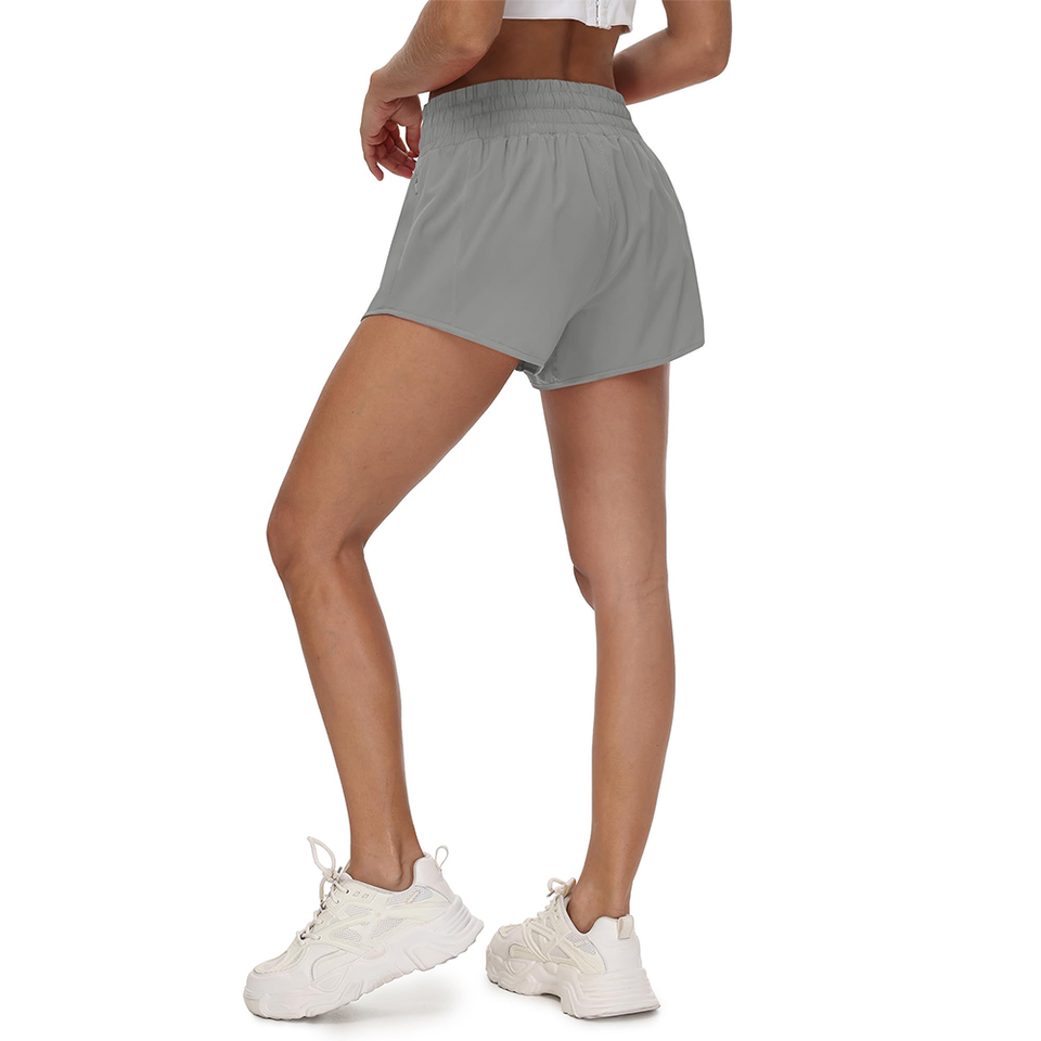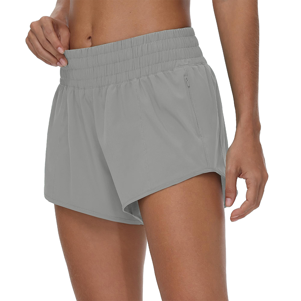 กางเกงวิ่งโลโก้แบบกำหนดเองสำหรับผู้หญิง กางเกงกีฬาแห้งเร็วสำหรับเดินป่าและวิ่งจ๊อกกิ้ง มีกระเป๋าซิป กางเกงขาสั้นผู้หญิง