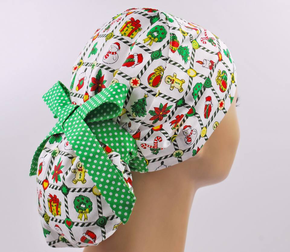 หมวกผ้าซาตินสำหรับผ่าตัดหางม้ายาวมีกระดุมปรับได้โลโก้ตามสั่ง