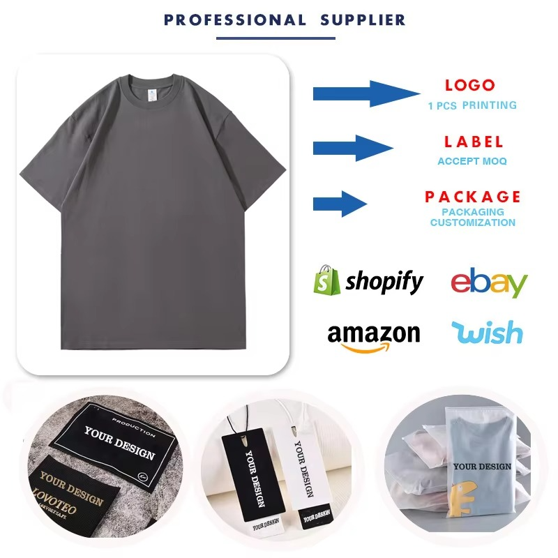 เสื้อยืดโอเวอร์ไซส์ธรรมดาพิมพ์ลายโลโก้ที่กำหนดเองเสื้อยืด unisex ผ้าฝ้าย100% ใช้ได้ทั้งชายและหญิง