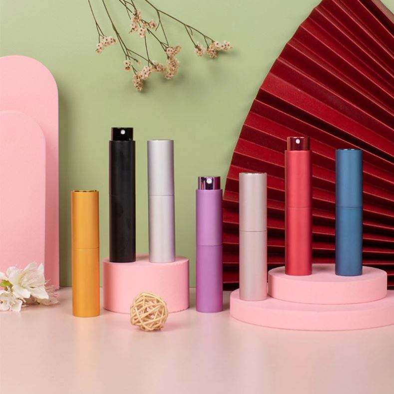 โลโก้สั่งทำพิมพ์สกรีน ขั้นต่ำ 100 ชิ้น ขวดสเปรย์แบบหัวปั๊มขนาดเล็ก 5 มล. ขวดอลูมิเนียมเปล่าแบบเติมได้ขนาด 30 มล. สำหรับน้ำหอม หรูหรา พกพาสะดวก